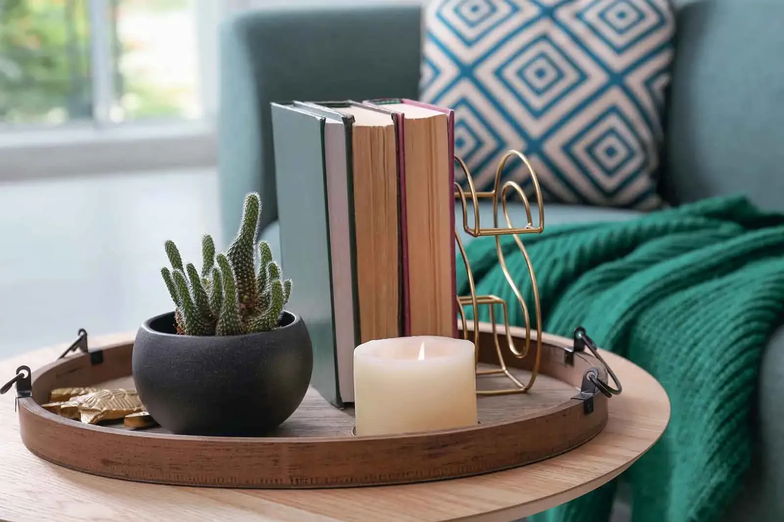A decorative tray can help organise your display and keep it looking intentional. Trays frame smaller items and create a defined area for your décor, which is especially effective on larger tables. Trays can also make it easier to clear the table quickly when needed.